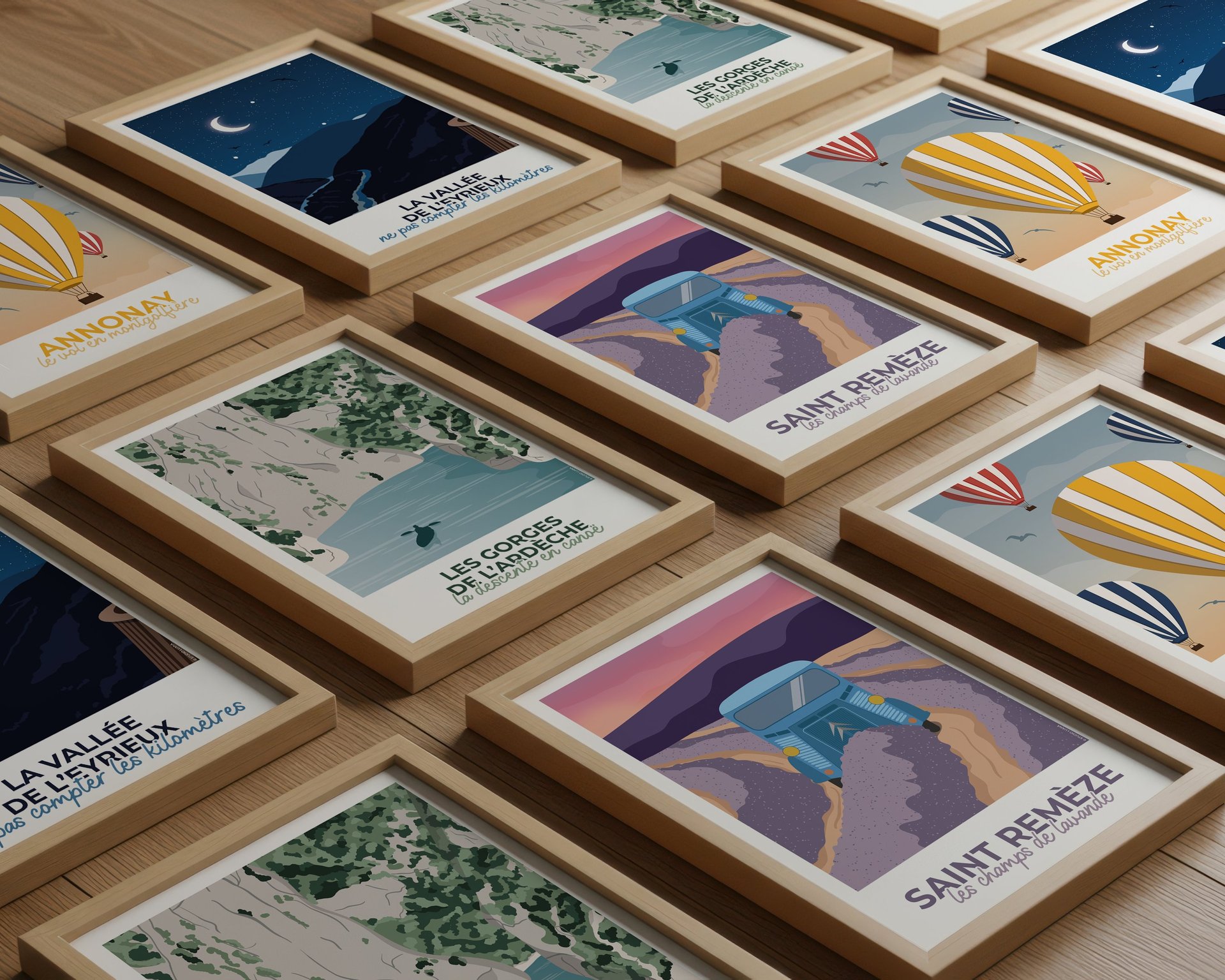 Cette collection de 4 affiches est née de l’envie de capturer l’Ardèche dans ce qu’elle a de plus doux et authentique. Quatre paysages, quatre ambiances, quatre façons de ressentir ce territoire.